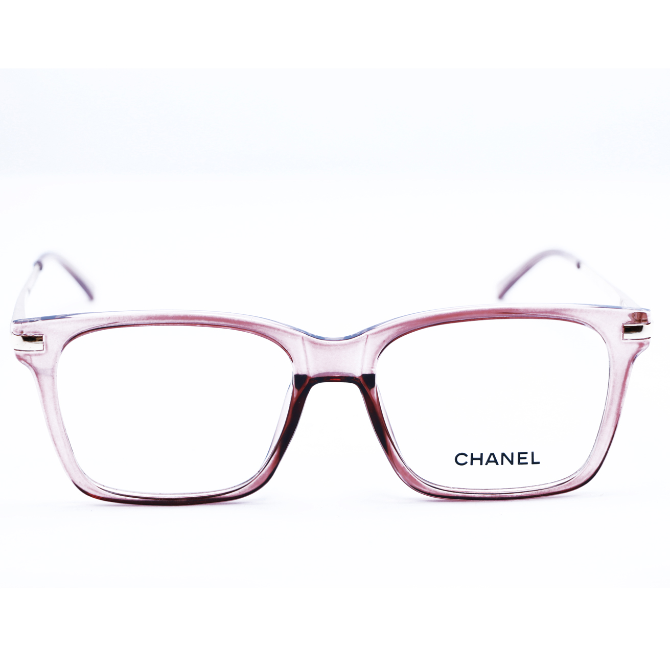 Elegant rectangular eyeglasses with a soft translucent pink frame and refined details. Designed for a chic, feminine look, offering everyday comfort and a stylish, modern appeal.
