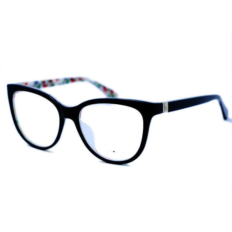 These Kate Spade New York optical frames offer a charming and sophisticated aesthetic, blending a classic professional front with a vibrant, feminine interior.